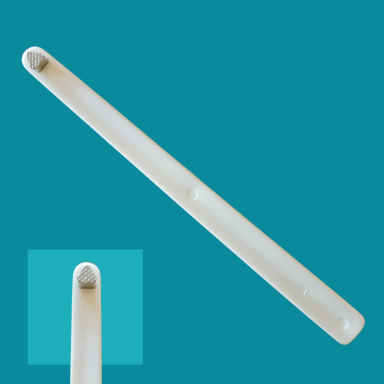 INSTRUMENTO MANUAL PLÁSTICO CON ASENTADOR METÁLICO DE FORMA TRIANGULAR. TIENE UN DISEÑO QUE PERMITE APLICAR PRESIÓN CONTROLADA PARA ASENTAR O AJUSTAR LA BANDA SOBRE EL MOLAR O PREMOLAR SIN DAÑARLO.